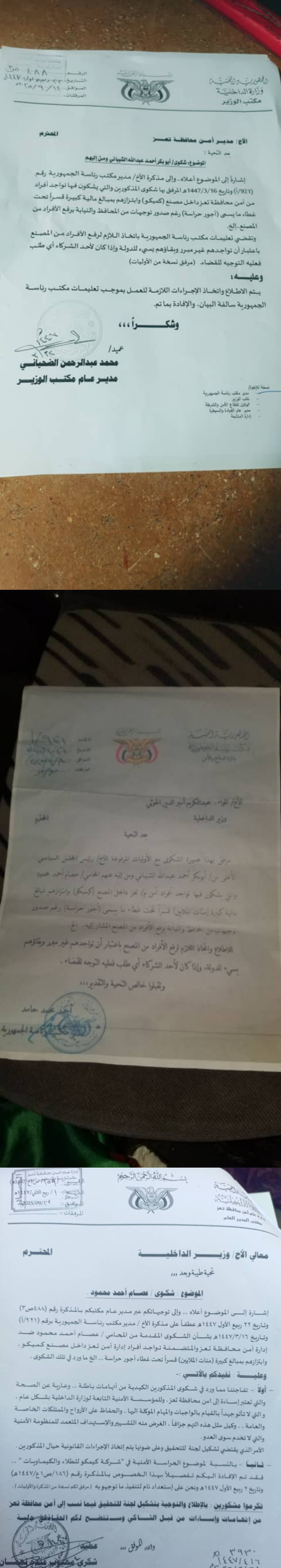 “بلطجة رسمية” تهدد الصناعة الوطنية… مدير أمن تعز يستولي على مصنع «كميكو» ويتحدى أوامر رئاسية