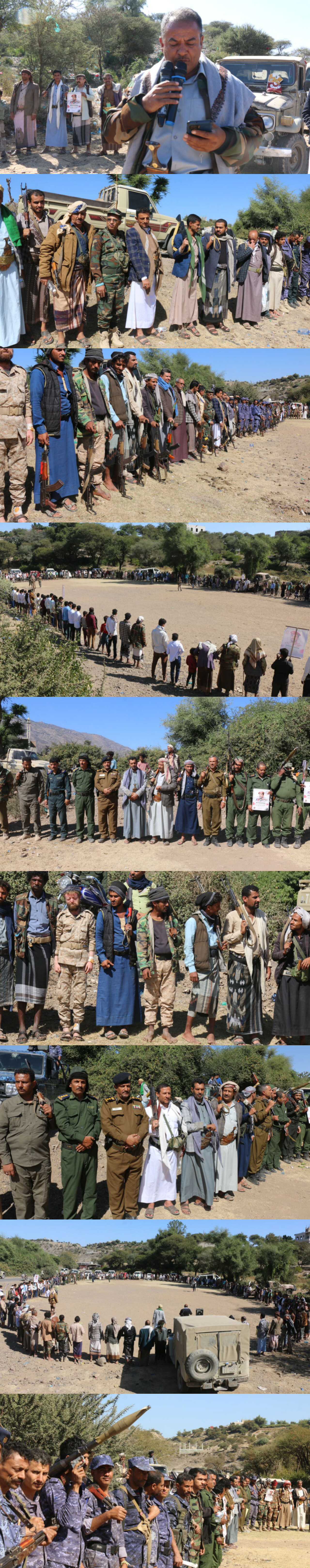 قبائل سامِع تعلن موقفها… تعبئة مفتوحة واستعداد لمعركة “الأمة” الأحد ـ 23 نوفمبر -2025م تعز – سامِع // أجراس- اليمن شهدت مديرية سامِع بمحافظة تعز، اليوم، وقفة قبلية مسلّحة شارك فيها قيادات محلية وأمنية ومشايخ ووجهاء المديرية، وذلك للتأكيد على استمرار التعبئة العامة والجاهزية القتالية في مواجهة ما وصفوه بـ“الأعداء والمؤامرات”. وشارك في الوقفة نائب مسؤول التعبئة العامة بالمحافظة محمد الجرادي، ومدير عام مديرية سامع محمد الصغير، ومساعد مدير عام شرطة تعز العميد رشاد السامعي، ومسؤولو التعبئة بمديريات سامع وخدير والصلّو، إضافة إلى مديري أمن سامع وخدير، وعدد من المشايخ والوجهاء. ورفع المشاركون لافتات تشيد بـ“وفاء الشهداء” وتؤكد استمرار التعبئة وتعلن الجاهزية لمواجهة أي تحركات أو تهديدات. كما جدّد المشاركون استعدادهم لتنفيذ توجيهات قائد الجماعة عبد الملك بدر الدين الحوثي، مؤكدين الثبات في موقفهم الداعم للشعب الفلسطيني. وأعلن المشاركون النفير الشامل واستعدادهم لخوض “المعركة ضد أعداء الأمة”، مؤكدين أن “الجهاد هو سبيل الكرامة وطريق نصرة الأمة”. وأكد بيان صادر عن الوقفة أن موقف اليمن تجاه القضية الفلسطينية “ثابت لا يتغير”، وأن أبناء مديرية سامع “على استعداد للتضحية بالغالي والنفيس حتى يتحرر الأقصى وتُهزم إسرائيل”. كما عبّر البيان عن جاهزية أبناء المديرية لمواجهة أي “مخططات أو مؤامرات” تستهدف الداخل، مشيراً إلى أن ثبات الموقف اليمني “أزعج الكفار والمنافقين”، وفق تعبيره. وهنّأ البيان الأجهزة الأمنية بما وصفه بـ“الإنجاز المهم” المتمثل بالقبض على شبكة تجسس “أمريكية–إسرائيلية–سعودية”، داعياً المواطنين إلى تعزيز التعاون مع الأجهزة الأمنية والإبلاغ عن أي أنشطة مشبوهة. وأكد البيان أهمية تضافر الجهود لإفشال محاولات “اختراق الجسم الداخلي لشعب الإيمان والحكمة”، مجدداً الدعوة لاستمرار أنشطة التعبئة، وفي مقدمتها الدورات العسكرية والوقفات القبلية المسلحة. وحذّر البيان من “الخونة والعملاء في الداخل والخارج”، داعياً الجهات المختصة إلى اتخاذ أقسى العقوبات بحق كل من يثبت تورطه في “العمالة أو زعزعة الأمن الداخلي خدمةً للأعداء”.