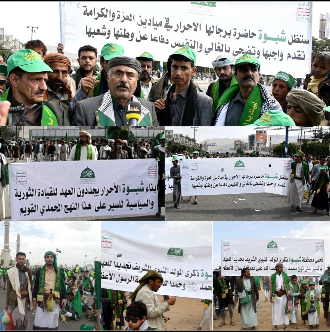حشود جماهيرية غفيرة من أبناء محافظة شبوة تشارك في الفعالية المركزية لإحياء ذكرى المولد النبوي الشريف بالعاصمة صنعاء