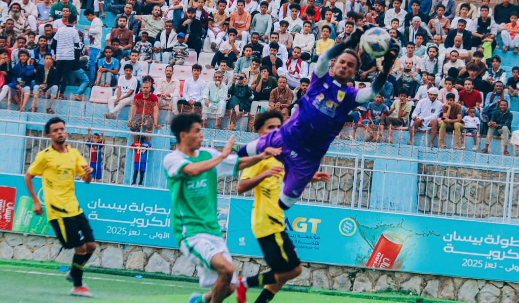 عل ملعب الشهداء بمحافظة تعز..ثمانية فرق تتصارع على المجد.. وبيسان الأولى تبلغ ذروة الإثارة.. تقرير