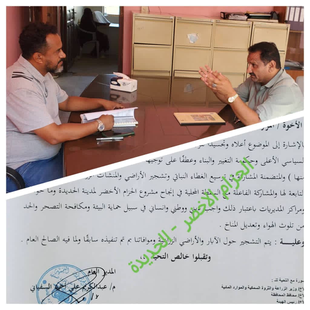 اقرار خارطة مهام ونطاق مشروع الحزام الاخضر لمدينة الحديدة ومداخلها الرئيسية